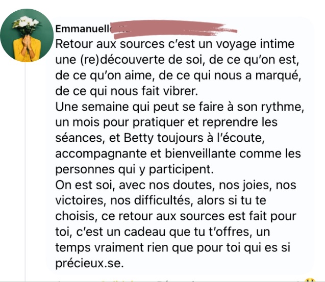 Emmanuelle R – retour aux sources par Betty | Août 5, 2021 | 0 commentaires Poster le commentaire Annuler la réponseVous devez vous connecter pour publier un commentaire.